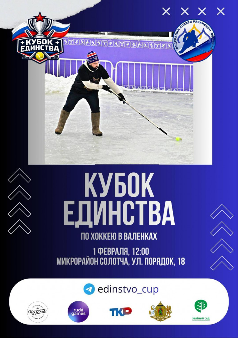 1 февраля 2026 года (Воскресенье) в Солотче стартует турнир по хоккею в валенках "Кубок Единства". Участников ожидают жаркие баталии, незабываемая атмосфера праздника и приятные призы!